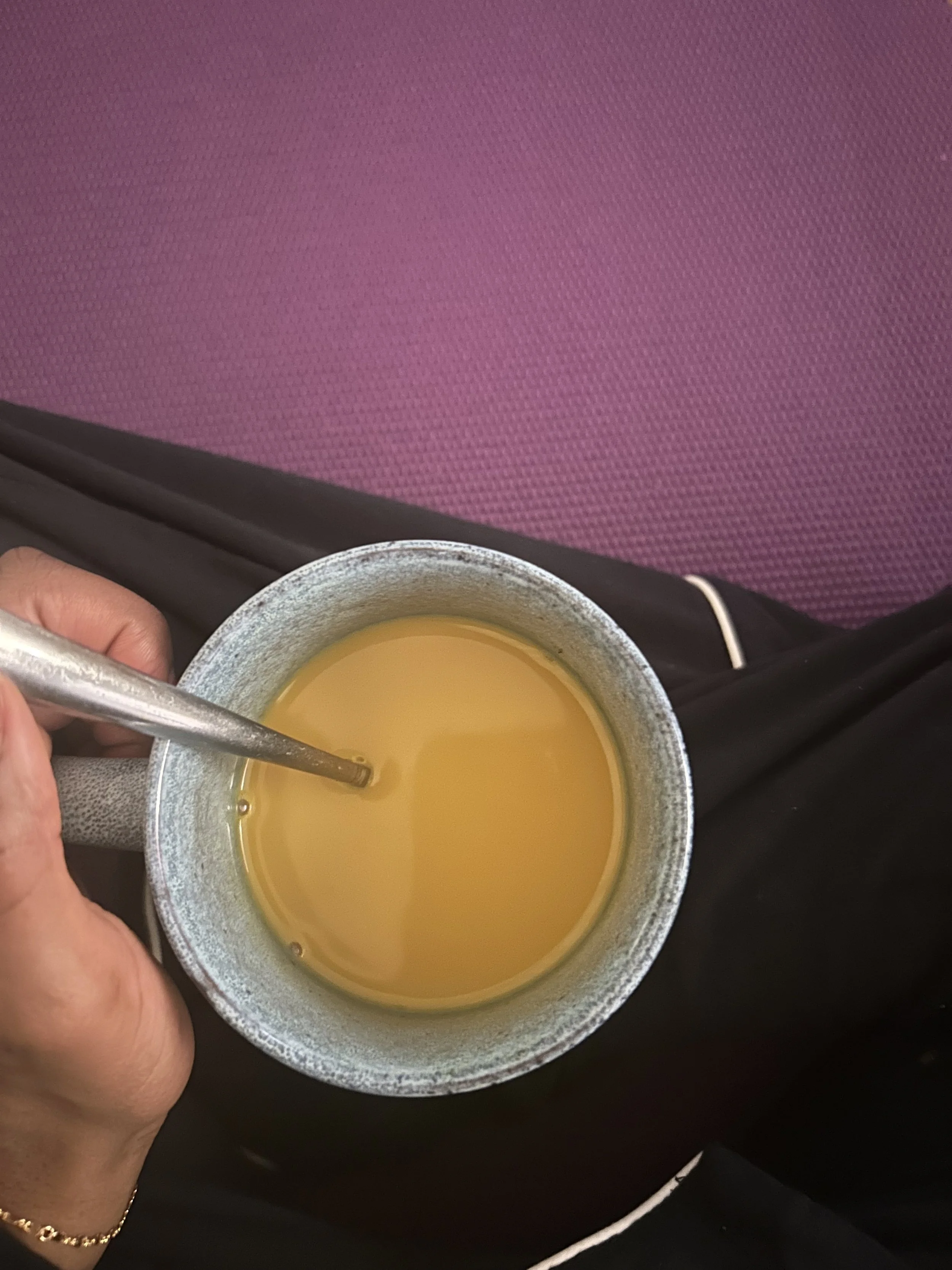 One of my favorite evening rituals is drinking golden milk, which contains turmeric, black pepper, honey, nutmeg, and cinnamon. This combination is not only great for circulation but also helps with sleep. Turmeric, in particular, is rich in phytonutrients that may protect the body by neutralizing free radicals from things like pollution and sunlight, while also shielding the cells from damage. As I’m on a blood-building journey this year, I might start alternating the sleep milk with bone broth.